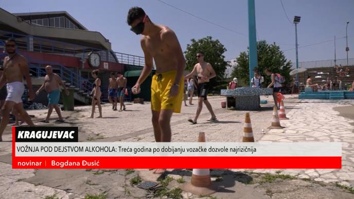 Akcija simulacije uticaja alkohola i psihoaktivnih supstanci organizovana je na gradskim bazenima u Kragujevcu, a njen cilj bio je da edukuje i odvrati mlade vozače od vožnje u pijanom stanju.