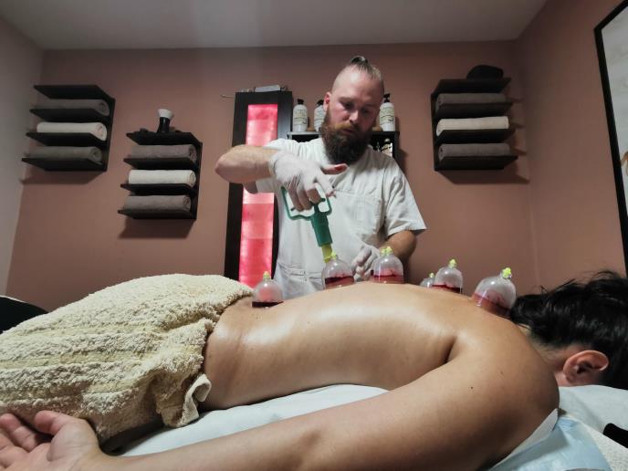 Aleksandar Gostiljac je diplomirani fizioterapeut. "Proces se izvodi tako što se prvenstveno uradi masaža, da se telo pripremi ha hidžamu kako bi se napravila dobra cirkulacija u telu, i da se mišići opuste. Nakon tog procesa nastavljamo sa kamping ili vakum masažom da bi se odradila još bolja cirkulacija stujanja krvi kroz telo, takozvana suva hidžama“, kaže Aleksandar.