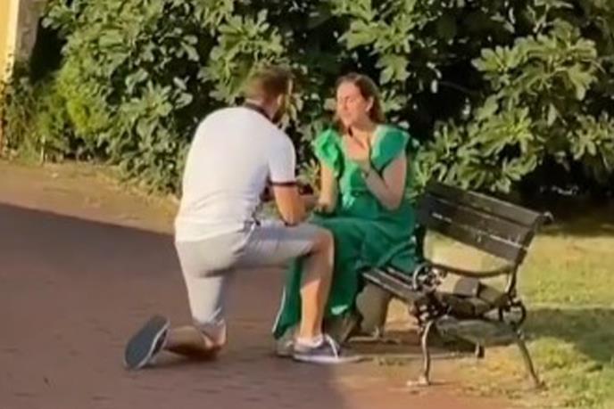 Kako se može videti na Instagram profilu "nsuzivo", na video snimku, mladić je kleknuo ispred devojke koja je sedela na klupi i postavio joj "najlepšu rečenicu".
