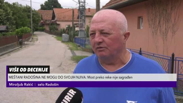 Oko 70 meštana u selu Radošin ne može do svojih njiva koje se nalaze na suprotnoj strani Morave jer je na reci mali vodostaj pa su primorani da putuju naokolo, prelazeći i do 50 km u jednom pravcu. Nezavidnu situaciju bi im rešio most koji su platili i na koji čekaju već 15 godina, ali uzalud!