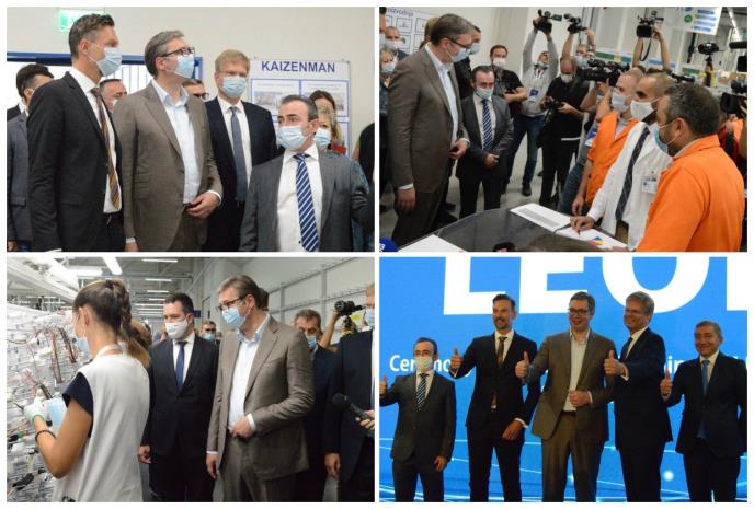 Predsednik Srbije Aleksandar Vučić rekao je na otvaranju četvrte fabrike "Leonija" u Srbiji, da će tu do 2023. biti zaposleno pet hiljada ljudi i zatražio od nemačke kompanije da u toj fabrici zaposle, ako mogu, do šest hiljada ljudi i još povećaju plate radnicima.