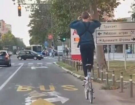 Prizor momka koji nasred "Mosta slobode" vozi bicikl bez ruku stojeći na rudi sa sve slušalicama u ušima privukao šokirao je Novosađane.