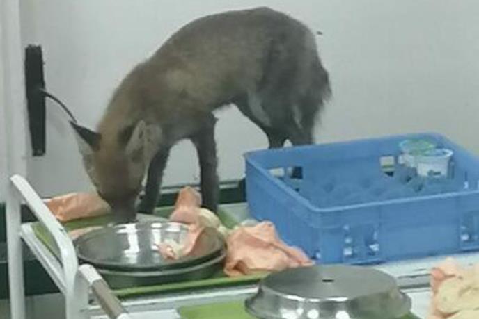 Na fotografiji koja je dostavljena redakciji, a za koju se pretpostavlja da je od pre 5-6 dana, lisica je bila zatečena na "doručku" na internom odeljenju gde je pojela hranu.