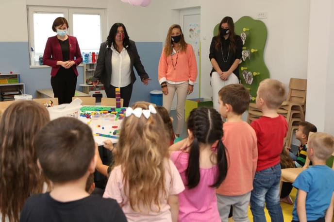 KRUŠEVAC - Predstavnici Fondacije Novak Đoković, globalna direkorka Jelena Đoković i nacionalna direktorka Maja Kremić, zajedno sa predsednicom opštine Trstenik Milenom Turk, predsednikom SO Gerasimom Atanaskovićem i direktorkom Vrtića “Biseri” Marinom Petrović, svečano su otvorili nov objekat vrtića ,,Biseri 4'', koji se nalazi u Stopanji.