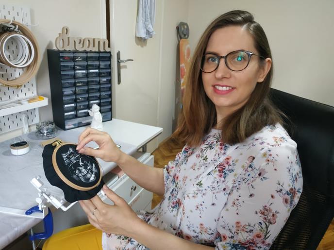 -Baka me je još u mladosti naučila da vezem. Videla sam da neke žene širom sveta rade nešto slično. Nakon godinu dana, naučila sam kako da napravim nešto što će roditeljima ostati kao divna uspomena. Trebala mi je opipljiva uspomena iz mog stomaka, a da nije papir veličine vizit karte. Znala sam šta želim da izvezem, iako tad nisam znala kako to da uradim. Bod po bod, milimetar po milimetar, i nakon nekoliko dana, moj prvi vez ličio je na ultrazvuk sina prvenca, Nedavno sam se porodila i sada imam ćerkicu, ali posao nisam zapostavila- kaže Branislava.