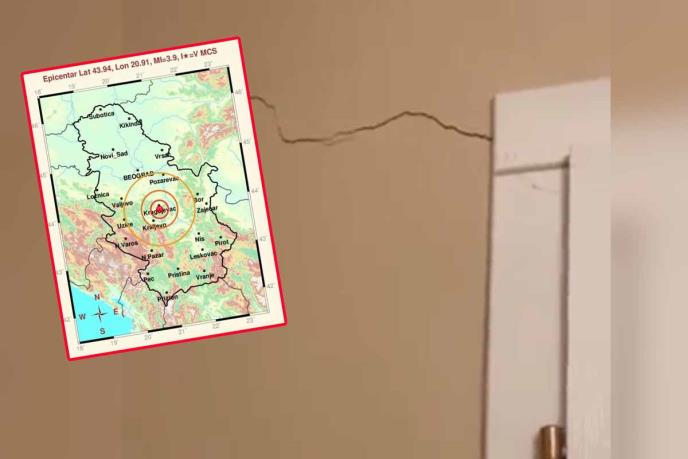 Tako se na društvenim mrežama pojavio snimak na kom se vidi napukao zid, a korisnica je napisala da je reč o posledicama zemljotresa u Kragujevcu.