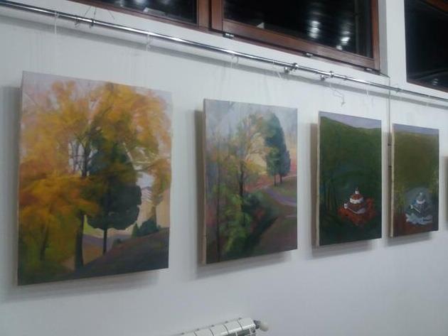 -Upijala sam utiske boja i to prenela na platno u četiri različite varijante. Radim aktove u poslednje vreme, a ovde sam ih smestila u šume i u bazen. Sve te impresije iz bazena - para, voda, ljudska tela, plavetnilo... sve se to našlo na slici “Banjske kupačice”. Ovde je jesen u punom sjaju, obimu i potencijalu. U Jastrebačkoj šumi sam boravila tokom dana i te impresije prenela na sliku “Jesenje vile”, a u toj šumi se nalaze i aktovi šumskih vila koje se povremeno pojavljuju. Treća slika je inspirisana šumom, ali i problemom narcisoidnosti koji je danas dosta prisutan među ljudima, a glavna akter slike je Narcisa, opčinjena svojim odrazom u šumskom jezeru.