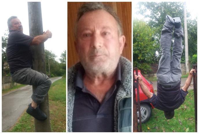 "Krenuo sam od zemlje, pa sve naviše postepeno, a to radim i sada. Na seosku bogomolju Spasovdan vežbao sam i na ringišpilu koji je tada bio u selu. Zadivio sam profesionalce, a neki su se čak i uplašili i nisu smeli da gledaju moje vratolomije. Potpisao sam se da sam odgovoran za sebe, pa me tek tad gazda primio. Radio sam brojne akrobatske vežbe gde su noge gore, a glava dole. Na brojnim akcijama sam se penjao po drveću, kao i na banderama za struju. Dobio sam brojne opklade, jer sam se za samo 14 sekundi ispenjao na banderu do sijalica i vratio nazad. Poznati su moji podvizi na vežbama koje sam izvodio naopačke - naglavačke. Penjem se bez penjalica na deblje bandere, a često nastupa i po vašarima i drugim manifestacijama. I sada u svojoj 65. godini radim sve ove vežbe i oduševljavam svoje meštane i brojnu publiku", dodaje on.