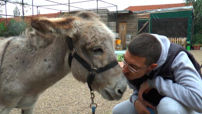 "Privikao se na druge životinje, druži se sa ponijima, psima, kozicama, a naravno i sa našim volonterima", započeo je priču Dušan.