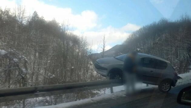 "Pežo koji je išao ispred nas nekako je skrenuo sa glavnog puta i završio na bankini zbog snega koji je padao danas ceo dan. Tako je na ovom putu, došlo do nezgode, kada se “pežo” sa crnogorskim registarskim oznakama bukvalno “popeo” na kolobran", kazao je jedan od očevidaca na RINU.