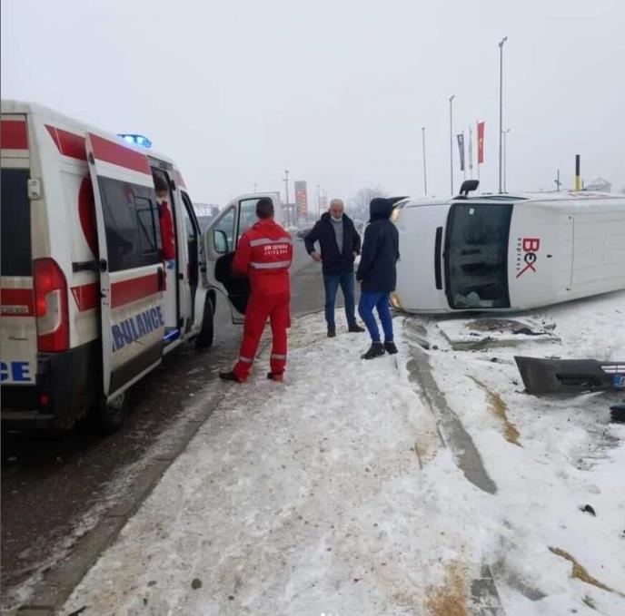 Kako saznajemo od očevidaca, vozač kombija je udario u putnički automobil, nakon čega je izgubio kontrolu nad teretnim vozilom koje se naposletku i prevrnulo - navodi se na Instagram stranici "192_rs".