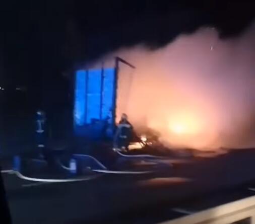 STRAVIČAN PRIZOR: Gori kamion na sred auto-puta, saobraćaj obustavljen (VIDEO)