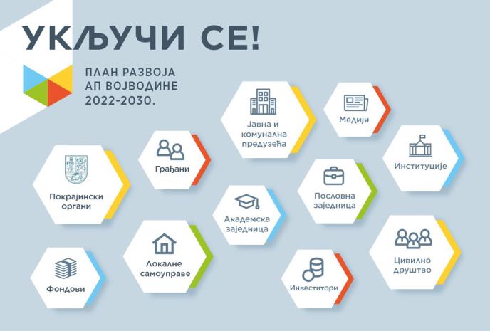 U cilju informisanja i uključivanja javnosti u definisanje vizije i ciljeva Plana razvoja AP Vojvodine 2022–2030, svima je dostupna internet stranica planrazvojaapv.rs. Označavanjem tri od 19 ponuđenih oblasti u jednostavnom grafičkom prikazu u okviru rubrike „Uključi se i ti“ na ovoj stranici, građanke i građani mogu da biraju one oblasti koje smatraju najvažnijim za kvalitet njihovog života i u kojima žele da vide najveći napredak u razvoju Vojvodine do 2030. godine. Glasanje je anonimno i trajaće do 24. marta 2022. godine. Na ovoj stranici nalazi se i upitnik koji omogućava građanima da daju svoje mišljenje o stanju u ključnim oblastima društveno-ekonomskog života i životne sredine i time doprinesu postavljanju realnih i održivih ciljeva.