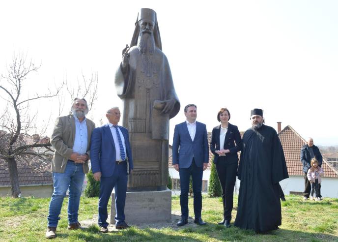 MINISTAR SELAKOVIĆ SVEČANO OTKRIO SPOMENIK PATRIJARHU GERMANU: Velika duhovna i kulturna manifestacija u Velikoj Drenovi (FOTO)