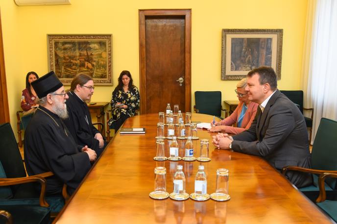 Predsednik Pokrajinske vlade Igor Mirović primio je danas episkopa sremskog Vasilija, povodom obeležavanja stote godišnjice ujedinjenja Srpske pravoslavne crkve, koja će biti održana 15. maja ove godine u Sremskim Karlovcima.
