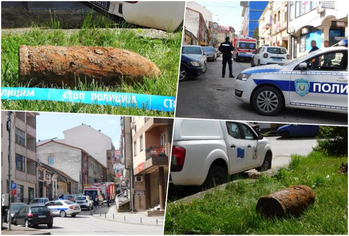 Nešto pre 11 časova specijalizovana ekipa za uništavanje eksplozivnih ostataka rata Sektora za vanredne situacije MUP-a Srbije došla je na lice mesta. Policija je blokirala ulicu pored škole i obližnje zgrade Osnovnog suda, a posle tridesetak minuta bomba je "spakovana" i u pratnji policije, vatrogasaca i kola hitne pomoći transportovana na poligonu u Lešnici, van naselja, u rejon Luke, gde će biti uništena.