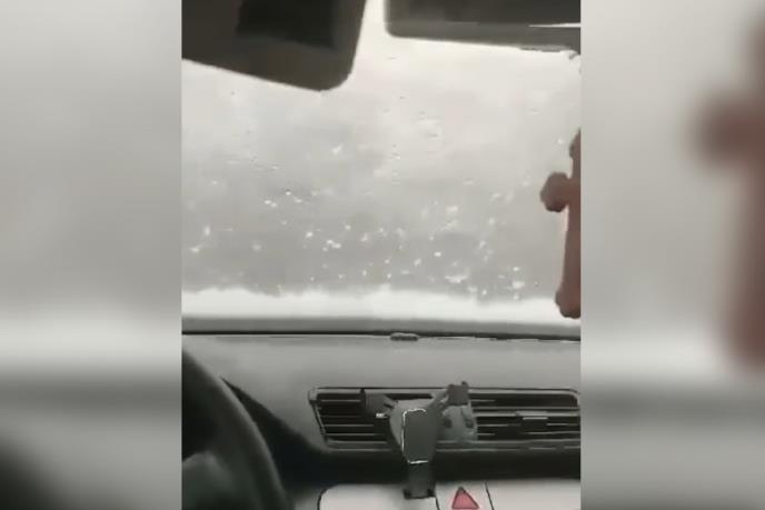 Na snimcima sa društvenih mreža vidi se da su se mnoga dvorišta i imanja zabelela usled jakog grada koji je napadao.