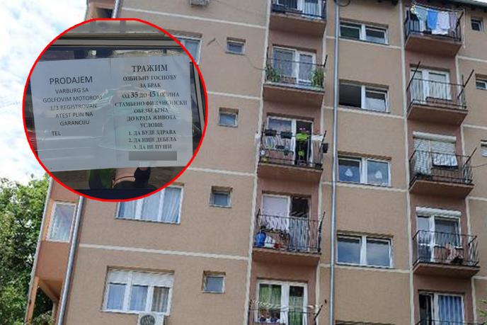 - Tražim ozbiljnu gospođu za brak, od 35 do 45 godina, stambeno i finansijski obezbeđena do kraja života - piše u oglasu koji je zalepljen na prozoru automobila.