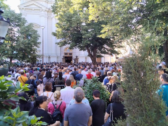 Ispred Saborne crkve u Sremskim Karlovcima okupilo se nekoliko hiljada vernika.