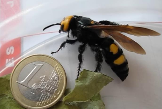 - Iako, kako je već rečeno, podsećaju na stršljene reč je o mamutskoj osi (Megascolia maculata) veoma korisnom insektu, koji nije agresivan i ne napada ljude. Ženke su veće (oko 6cm) i imaju žutu glavu, dok su mužjaci nešto manji i sa crnom glavom, karakterišu ih žute mrlje na leđnoj strani abdomena. Ove ose se uvek nalaze u blizini trulih panjeva, a njihova veća brojnost ukazuje na prenamnoženje neke vrste tvrdokrilaca.