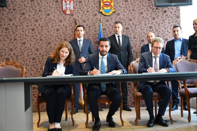 Ministar Momirović ugovor za realizaciju izgradnje za prečišćavanje otpadnih voda i kanalizacione mreže potpisao je sa gradonačelnikom Pirota Vladanom Vasićem, direktorom JP Vodovod i kanalizacija Pirot Zoranom Nikolićem, projekt menadžerom Stefani Rauprihom i direktorom KFV predsedništva u Srbiji Rudigerom Hartmanom. Nakon toga, ministar MGSI Tomislav Momirović potpisao je i ugovor za tehničku podršku eksperata sa Stefani Rauprihom i Rudigerom Hartmanom, koji je tom prilikom rekao da Nemačka razvojna saradnja kao i KFV ostaju posvećeni održivom urbanom razvoju, održivom snabdevanju vodom kao i tretmanom za odvođenjem otpadnih voda.