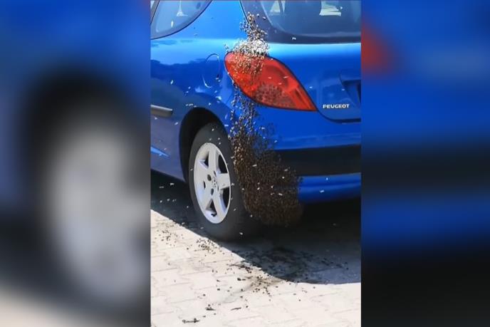 Na snimku koji je zabeležio jedan Novosađanin vidi se plavi "pežo" parkiran na Bulevaru vojvode Stepe koji je zaposeo roj pčela! Skoncentrisale su se oko levog zadnjeg točka, a kako se navodi u opisu video-snimka veruje se da je matica ostala zarobljena iza branika te da njena "vojska" pokušava da je oslobodi.