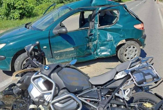 Kako se na slikama objavljenim na Instagram profilu "192" može videti, sudarili su se automobil "pežo 206" i motocikl marke BMW.