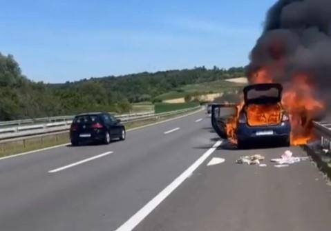 Na auto-putu Beograd - Niš izgoreo je automobil.