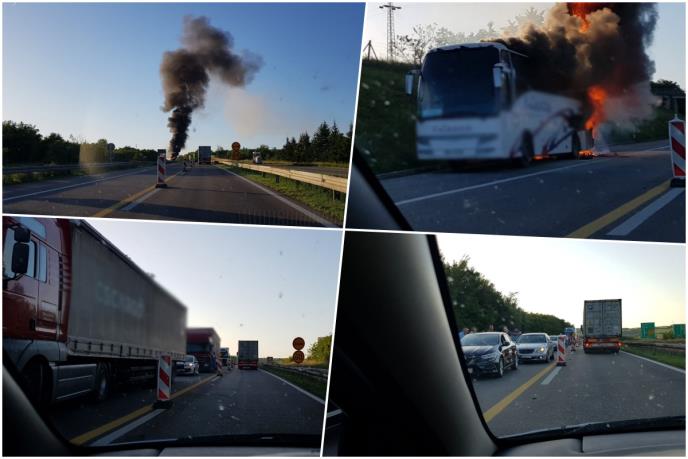 GORI AUTOBUS KOD ALEKSINCA: Zapalio se nasred auto-puta PRVE SLIKE s lica mesta