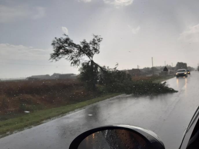 Dva drveta su bukvalno prepolovljena na izlazu iz grada prema Prigrevici i zaustavila su saobraćaj jer su pala na put. Vozači se snalaze tako što skrenu na biciklističku stazu i zaobiđu zatvoren deo puta.