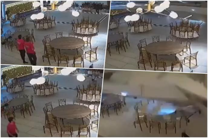 Trenutak obrušavanja plafona iznad nove svečane sale u Hotelu "Leskovac" delovao je jezivo, a u tom momentu su u objektu bili i radnici koji su počeli da beže glavom bez obzira, ali srećom niko nije povređen.