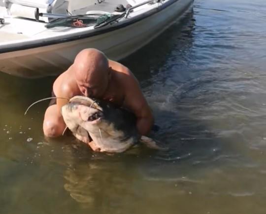 DRAGOMIR NIJE MOGAO DA ODOLI! Pokazao drugarima iz Srbije kakvog je soma grdosiju ulovio! Grli ga pa ljubi međ’ brkove! 2,3 METRA