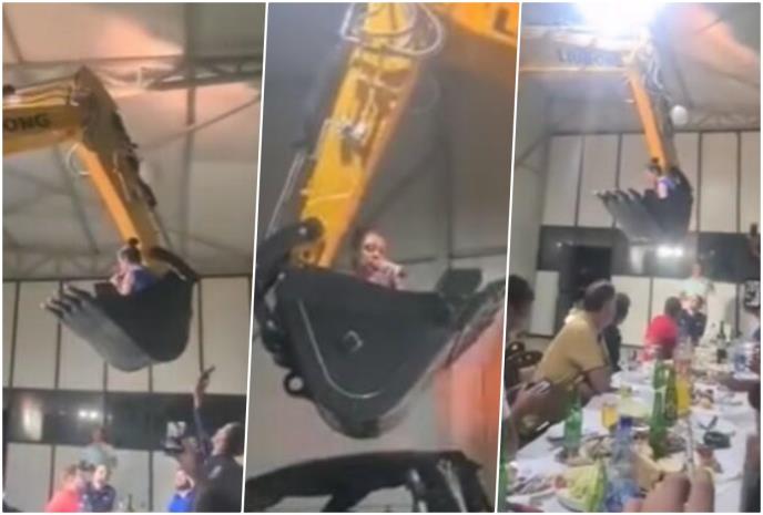 Dok narodnjak grmi, pevačica nonšalantno drži mikrofon i peva na par metara iznad stola, tik iznad glava zvanica, a majstor koji upravlja bagerom, ponet pesmom, oduševljeno drma glavom u ritmu taktova hita Zorice Brunclik "Da zakopčam jeleče..."