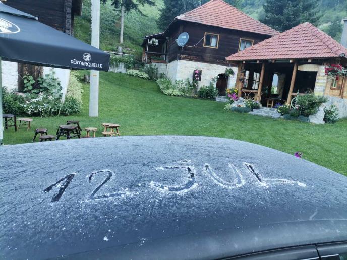 "Ne samo noći da su kod nas hladne već i jutra, ovo jutros je nezapamćeno. Danas je dan osvanuo u minusu, temperatura je stigla tri stepena ispod nule, na automobilu se uhvatio led koji nisam mogao lako da skinem, morao sam da ga stružem. Morao sam da na kolima napišem datum današnjeg dana, jer ovakav mraz još niko nije zapamtio na Petrovdan i da slikam. Toliko je bilo hladno da smo usred jula morali da ložimo vatru u svojim kućama", kazao je za RINU, Milojko Čkonjević, stanovnik najhladnih sela Štitkovo.