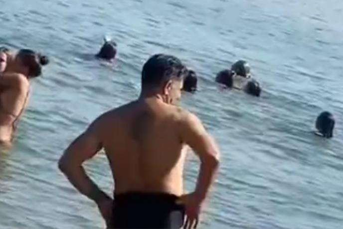"PROBAJ DA MU ODOLIŠ" Muškarac u plićaku napravio haos, žene gledaju i ne veruju! Hit snimak sa plaže u Sremskoj Mitrovici