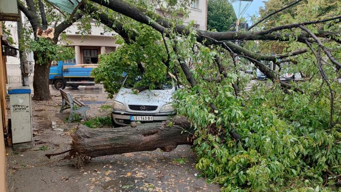 Drugi talas nevremena koji je danas zadesio Leskovac nešto posle 17 časova bukvalno je uništio centar grada. Vetar je čupao drveće iz korena koji su padali na automobile, krovovi zgrada su oštećeni, pokidani kablovi, pocepani bilbordi...