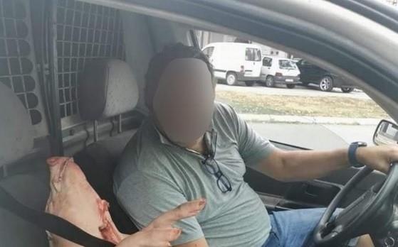 Reč je o muškarcu koji je uslikan za volanom, a na mestu suvozača mu društvo pravi...zaklano i očišćeno prase!