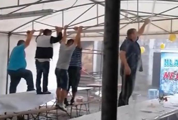 Naime, kako se vidi na snimku koji je objavljen na društvenoj mreži TikTok, nevreme je bilo toliko jako da su gosti morali doslovno da "vise" sa šipke kako bi sprečili vetar da potpuno rasturi šator.