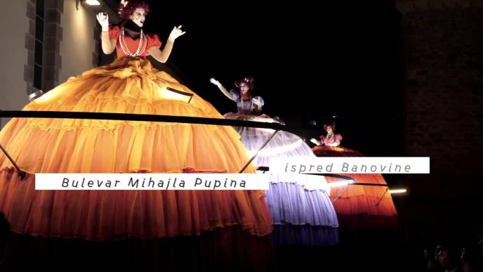 Festival će tradicionalno početi umetničkom povorkom u 19.30 sati ispred zgrade Banovine na Bulevaru Mihajla Pupina i predstavom ''Velike lutke'' francuskog teatra ''Trans ekspres''. Reč je o trenutno jednoj od najpopularnijih pozorišnih trupa na svetu. Publika će moći da vidi džinovske lutke, visoke pet metara, skoro isto toliko široke, koje će se kretati putanjom Bulevara preko mosta do Gradića gde će biti završnica u vidu velikog performansa, i što je važno, publika će biti uključena u ovu predstavu.