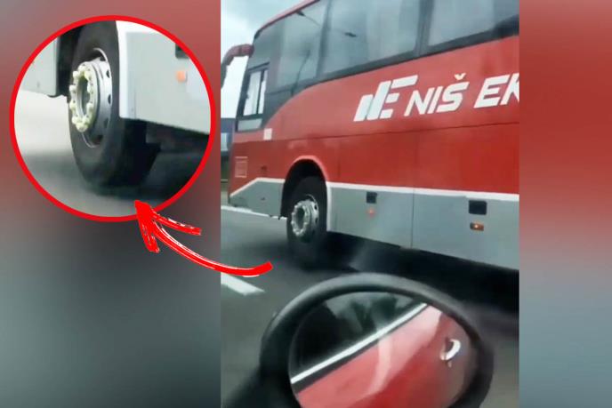 Na društvenim mreža objavljen je snimak autobusa "Niš ekspresa" koji velikom brzinom vozi na tri točka jer se jasno vidi mu prednji levi točak lebdi i uopšte ne dodiruje put.
