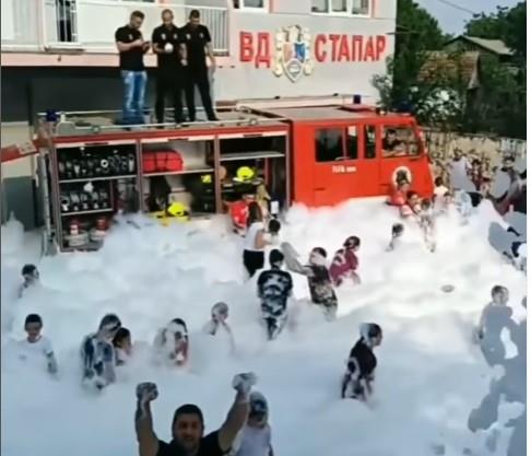 SRPSKI VATROGASCI NAPRAVILI ŽURKU ZA PAMĆENJE U STAPARIMA! Vatrogasni kamion pravi pena parti, mališani oduševljeni (VIDEO)