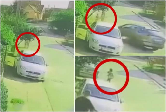 Na snimku se vidi automobil koji je tokom vožnje iznenada prešao na suprotnu stranu ulice gde je prošao tik pored majke koja je šetala malo dete. Automobil se zaustavio kad je udario u dvorišnu ogradu, a na ulici se odmah stvorila velika gužva.