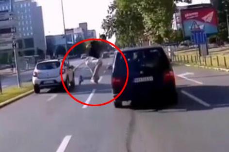 NOVOSAĐANI U ŠOKU! POGLEDAJTE ŠTA RADI MLADIĆ NASRED ULICE: Zalet, skok i šut u automobil u pokretu! Zašto je rizikovao život?