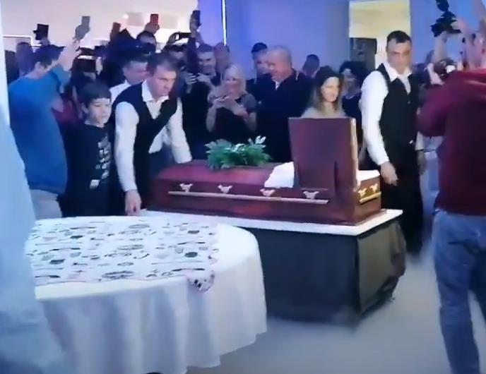 Na skupu u Požarevcu glavna atrakcija bila je torta u obliku mrtvačkog sanduka, probodena glogovim kocem, a deljeni su i privesci u obliku mrtvačkog sanduka i pogrebnih vozila.
