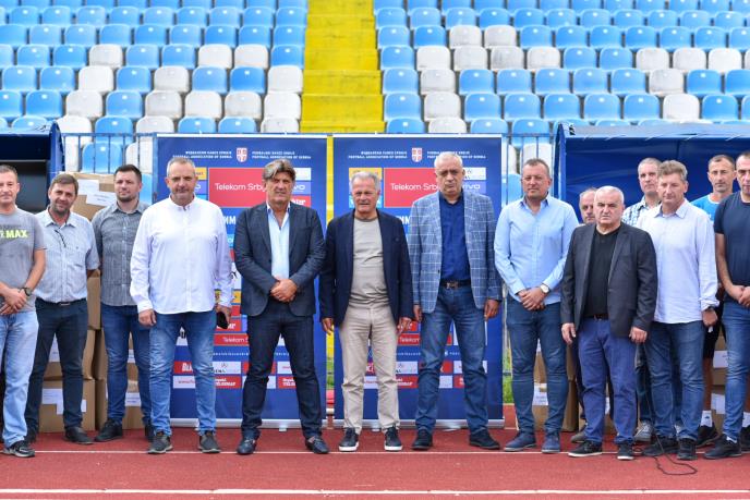 Fudbalski savez Srbije (FSS) nastavio je sa akcijom podele opreme klubovima iz cele Srbije. Na subotičkom Gradskom stadionu danas je, tim povodom, zamenik predsednika FSS Nenad Bjeković, u prisustvu predsednika Fudbalskog saveza Vojvodine Dragana Simovića i gradonačelnika Subotice Stevana Bakića, predstavnicima Područnih fudbalskih saveza Subotice i Sombora uručio po 25 garnitura sportske opreme.
