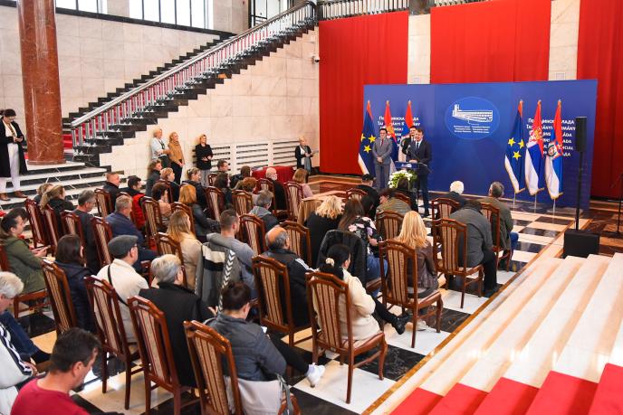 Predsednik Pokrajinske vlade Igor Mirović uručio je danas 64 ugovora za ekonomsko osnaživanje izbeglih, prognanih i raseljenih lica – kao pomoć u vidu alata, opreme i mehanizacije, za obavljanje proizvodnih ili uslužnih delatnosti.