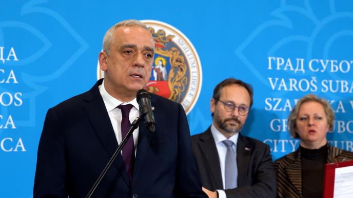 Gradonačelnik Stevan Bakić je iskoristio ovu priliku da svečano uruči poklon knjigu “Istorija Srpskog naroda” ambasadoru Evropske unije u Srbiji, Emanuelu Žiofreu i istakao da je Subotica grad različitosti i da je to ono što nas kao grad čini specifičnim i čime se građani Subotice ponose.