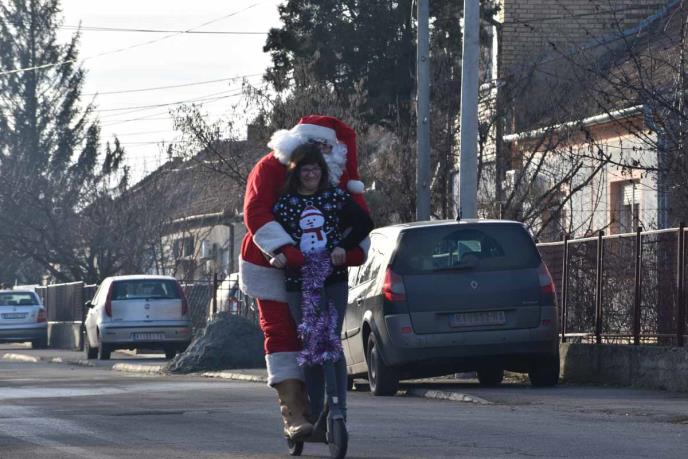 DEDA MRAZ IZ MOKRINA NA TROTINETU: Kikinđanki sa posebnim potrebama doneo paketić, pa je provozao