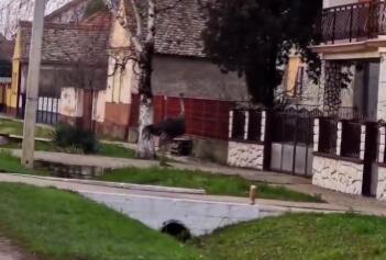 Ptica je najpre trčala oko kapija kuća, a onda je istrčala i na put.