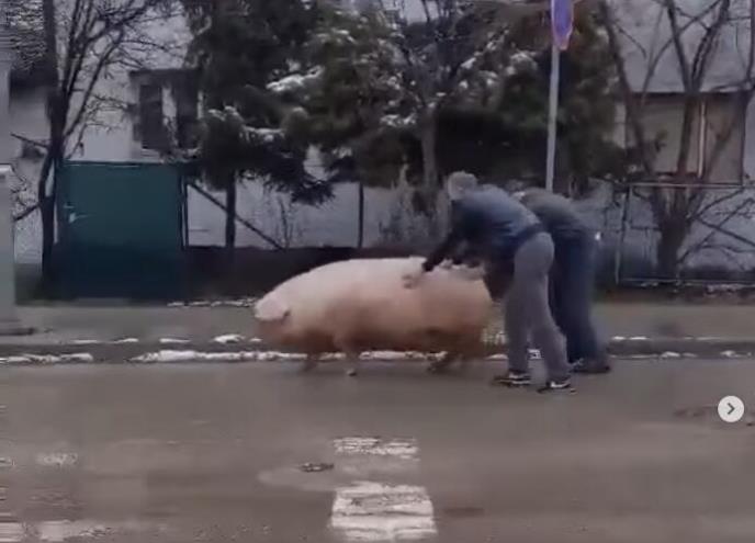 Naime, na snimku se vidi debela svinja koja šeta ulicom i to u mestu Gradac, a dvojica muškaraca je "guraju", nakon čega je usledila lavina komentara: